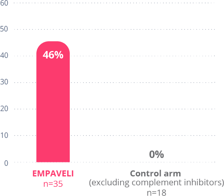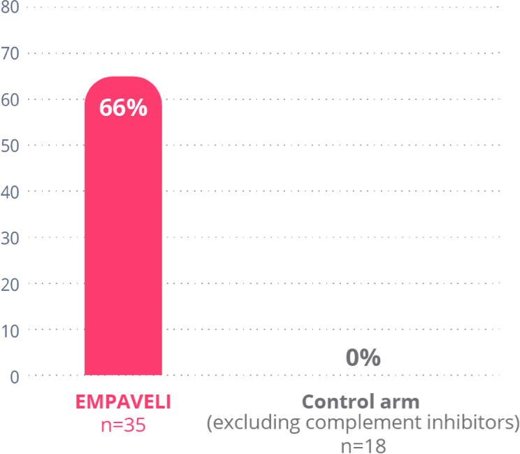 References: 1. Data on file. Apellis Pharmaceuticals, Inc., Waltham, MA. 2. Wong RSM, Navarro-Cabrera JR, Comia NS, et al. Pegcetacoplan controls hemolysis in complement inhibitor-naive patients with paroxysmal nocturnal hemoglobinuria. Blood Adv. 2023.bloodadvances.2022009129. 3. Dingli D, Matos JE, Lehrhaupt K, et al. The burden of illness in patients with paroxysmal nocturnal hemoglobinuria receiving treatment with the C5-inhibitors eculizumab or ravulizumab: results from a US patient survey. Ann Hematol. 2022;101(2):251-263. 4. Risitano AM, Marotta S, Ricci P, et al; Severe Aplastic Anemia Working Party of the European Group for Bone Marrow Transplantation. Anti-complement treatment for paroxysmal nocturnal hemoglobinuria: time for proximal complement inhibition? A position paper from the SAAWP of the EBMT. Front Immunol. 2019;10:1157.